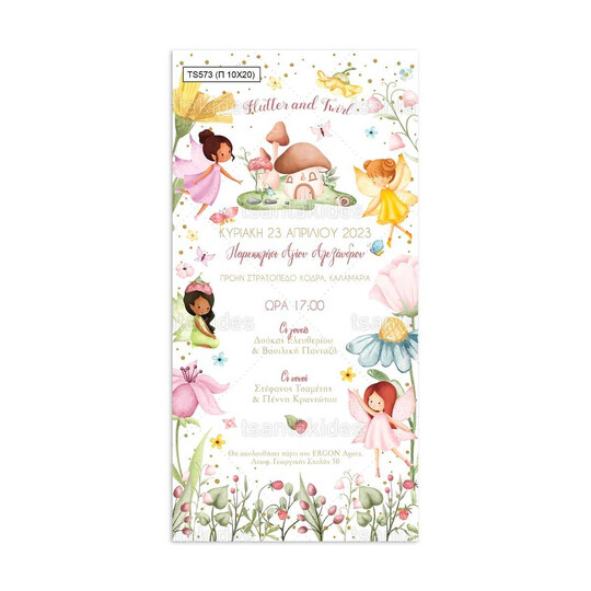 Προσκλητήριο βάπτισης παπυράκι εκτυπωμένο με θέμα Fairies
