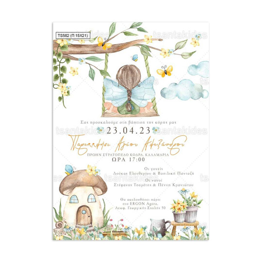 Προσκλητήριο βάπτισης παπυράκι εκτυπωμένο με θέμα Fairytale