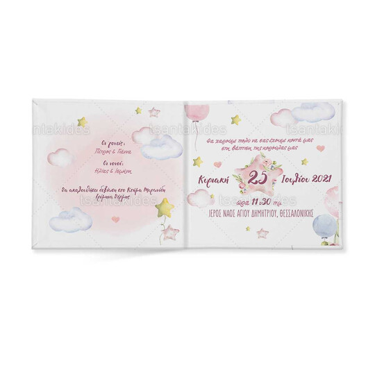 Προσκλητήριο σκληρό καπάκι,  παραμυθάκι μικρό, εκτυπωμένο με θέμα  το μονόκερο