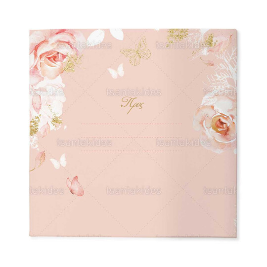 Προσκλητήριο σκληρό καπάκι,  παραμυθάκι μικρό, εκτυπωμένο με θέμα  την πεταλούδα και τα vintage λουλούδια