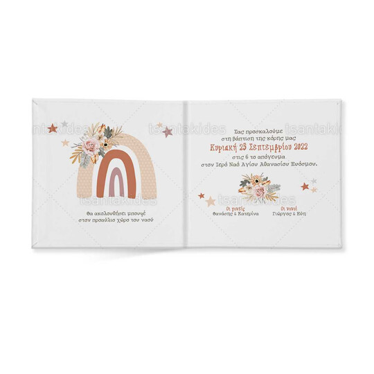 Προσκλητήριο σκληρό καπάκι,  παραμυθάκι μικρό, εκτυπωμένο με θέμα  Flower Rainbow
