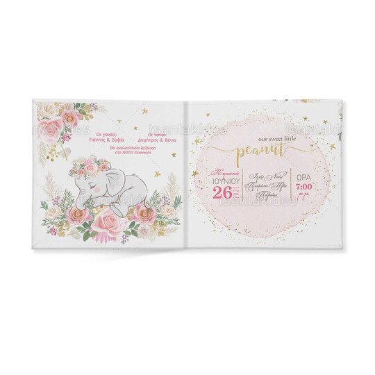 Προσκλητήριο σκληρό καπάκι, παραμυθάκι μικρό, εκτυπωμένο με θέμα Baby Girl Elephant