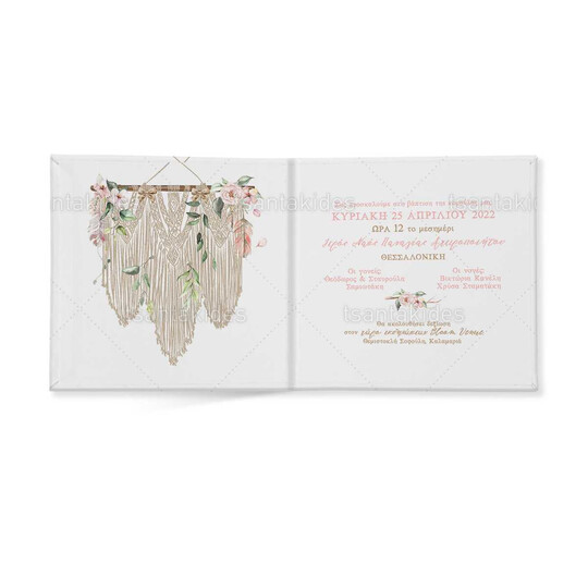 Προσκλητήριο σκληρό καπάκι, παραμυθάκι μικρό, εκτυπωμένο με θέμα Boho Macrame