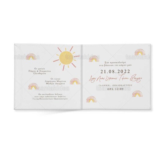 Προσκλητήριο σκληρό καπάκι,  παραμυθάκι μικρό, εκτυπωμένο με θέμα  Sunshine