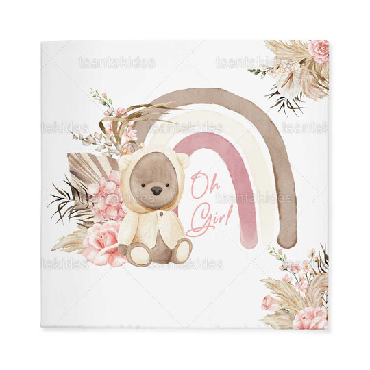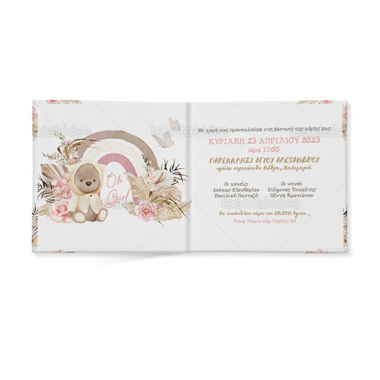 Προσκλητήριο σκληρό καπάκι, παραμυθάκι μικρό, εκτυπωμένο με θέμα Boho Teddy Bear
