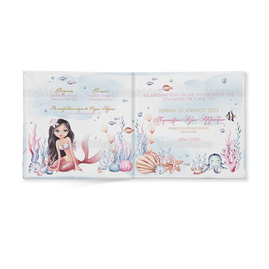 Προσκλητήριο σκληρό καπάκι,  παραμυθάκι μικρό, εκτυπωμένο με θέμα  Mermaid