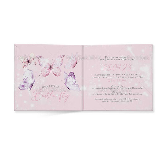 Προσκλητήριο σκληρό καπάκι, παραμυθάκι μικρό, εκτυπωμένο με θέμα Butterfly