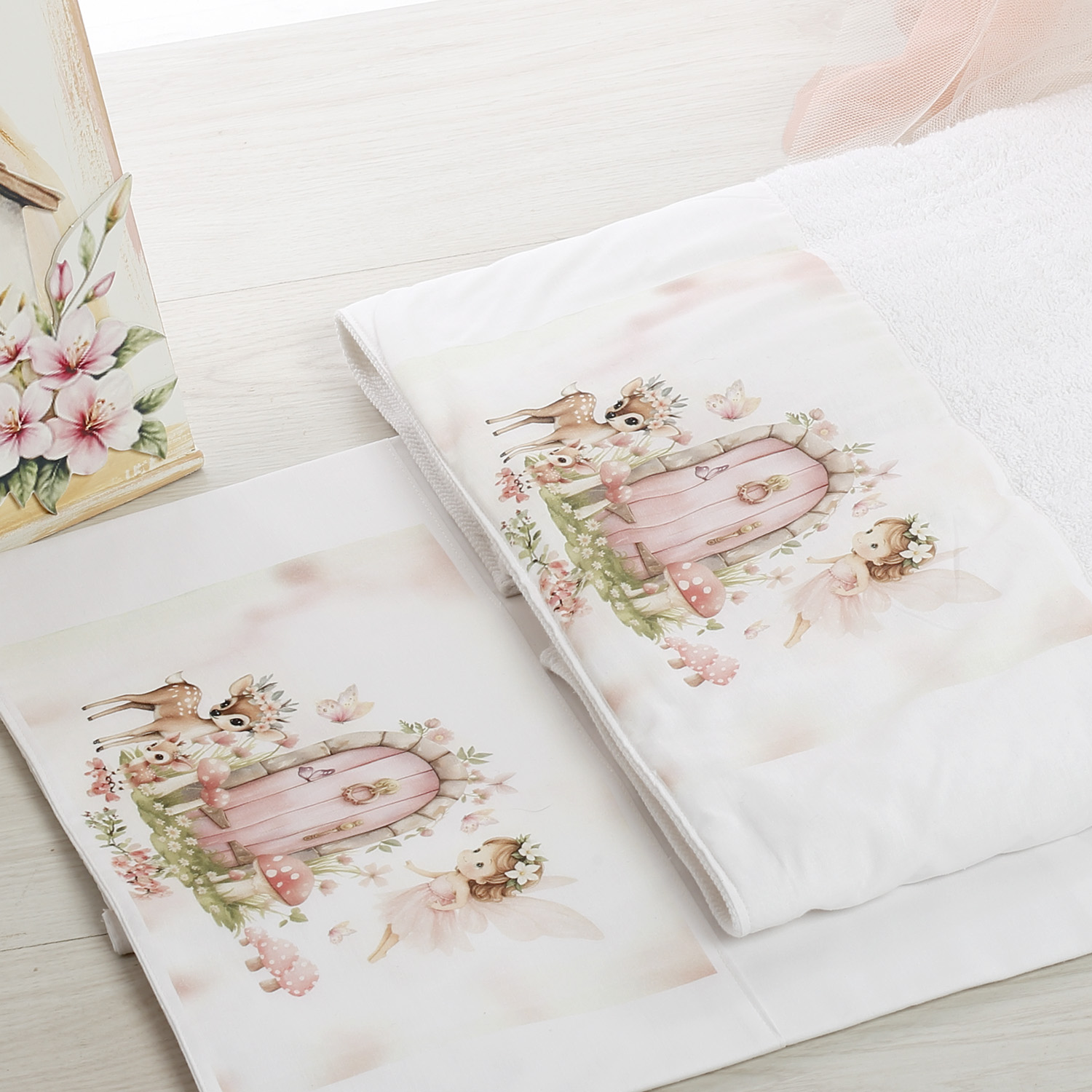 - Λαδόπανα: Πλήρες σετ (πετσέτες, εσώρουχα) με τυπωμένη παράσταση απόλυτα εναρμονισμένη με το παραμυθένιο θέμα της βάπτισης.