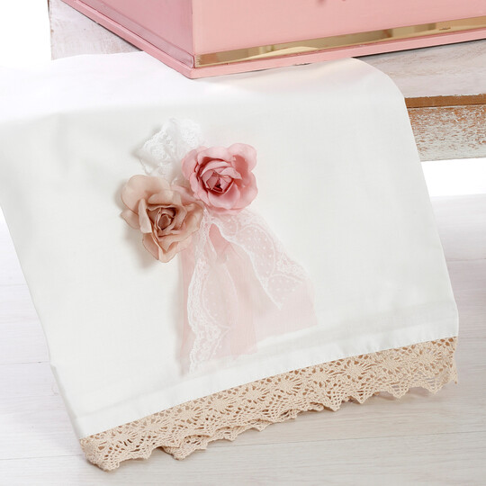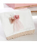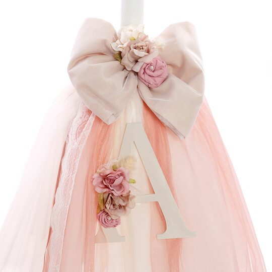 Ολοκληρωμένο βαπτιστικό σετ με μονόγραμμα, διακοσμημένο με υφασμάτινα λουλούδια, τούλια και δαντέλα σε απαλές ροζ και μπεζ αποχρώσεις. Ιδανικό για μια ρομαντική βάπτιση με αριστοκρατικές λεπτομέρειες. Το σετ περιλαμβάνει:✔ Ξύλινο κουτί βάπτισης διακοσμημένο με μεγάλο ξύλινο μονόγραμμα, χειροποίητα λουλούδια και δαντέλα. (Διαστάσεις: 45cm x 38cm x 38cm)✔ Λαμπάδα βάπτισης, διακοσμημένη με ανάγλυφο μονόγραμμα, πολυτελείς φιόγκους, υφασμάτινα λουλούδια και αέρινα τούλια. ✔ Λαδόπανα & εσώρουχα, υψηλής ποιότητας, που περιλαμβάνουν:Μεγάλη πετσέτα διακοσμημένη με φιόγκο και δαντέλαΜικρή πετσέταΒαμβακερά εσώρουχα (φανελάκι, σλιπάκι, σκουφάκι)✔ Σετ λαδιού με μπουκαλάκι, σαπούνι και κεράκια, διακοσμημένα με κορδέλες και ρομαντικές λεπτομέρειες.