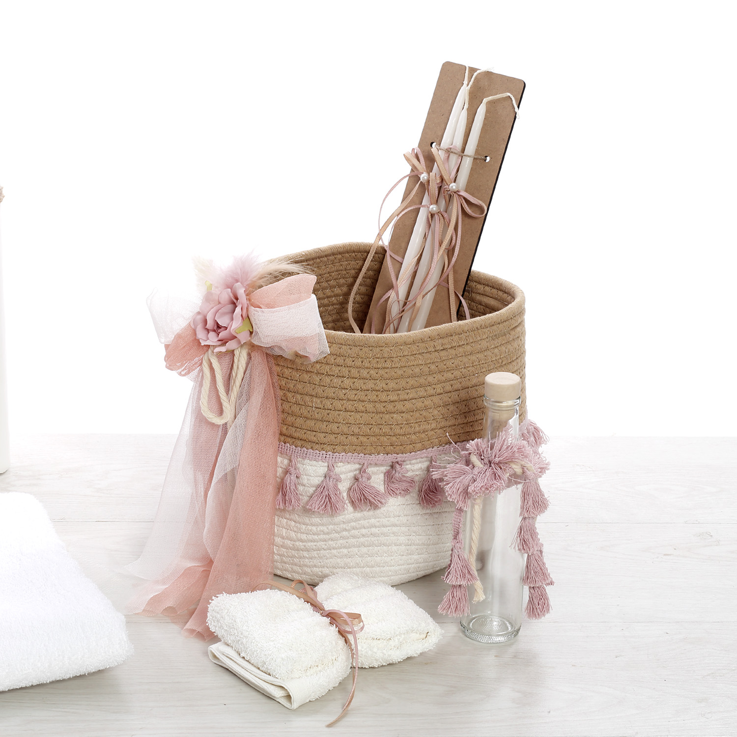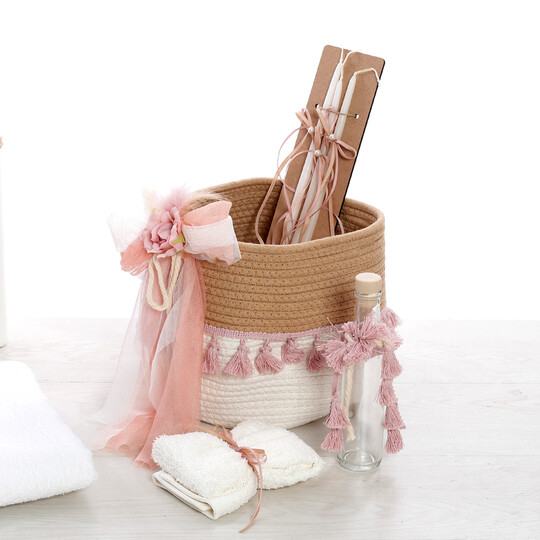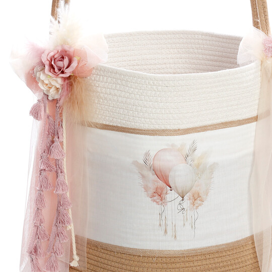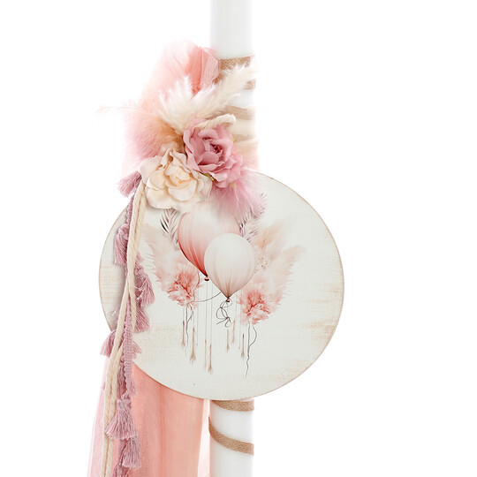Ολοκληρωμένο βαπτιστικό σετ με θέμα τα Μπαλόνια, διακοσμημένο με υψηλής ποιότητας UV εκτύπωση και αέρινα ρομαντικά στοιχεία. Μια κομψή και μοναδική επιλογή για μια παραμυθένια βάπτιση. Το σετ περιλαμβάνει:✔ Πλεκτό καλάθι βάπτισης, διακοσμημένο με UV εκτύπωση μπαλονιών, δαντελένιες κορδέλες και υφασμάτινα λουλούδια. (Διαστάσεις: 50cm x 40cm x 40cm)✔ Λαμπάδα βάπτισης, διακοσμημένη με ξύλινο διακοσμητικό στοιχείο UV εκτύπωσης μπαλονιών, φιόγκους, τούλια και κορδόνια σε ρομαντικές αποχρώσεις. ✔ Λαδόπανα & εσώρουχα, υψηλής ποιότητας, που περιλαμβάνουν:Μεγάλη πετσέτα με UV εκτύπωση μπαλονιώνΜικρή πετσέταΒαμβακερά εσώρουχα (φανελάκι, σλιπάκι, σκουφάκι)✔ Σετ λαδιού με μπουκαλάκι, σαπούνι και κεράκια, διακοσμημένα με κορδέλες και υφασμάτινες λεπτομέρειες.