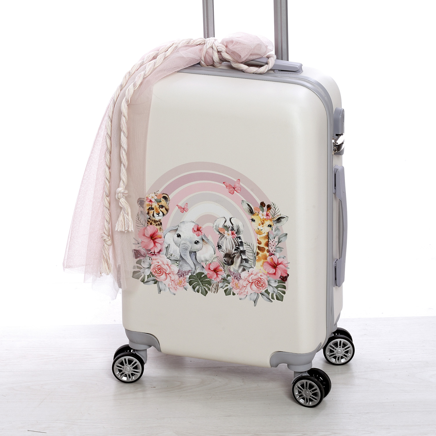 Σετ βάπτισης (Βαλίτσα,λαμπάδα,σταν λαδιού,λαδόπανο) με θέμα Ουράνιο τόξο ζωάκια.Διάσταση βαλίτσας (Υ.57 Μ.40 Π.22)