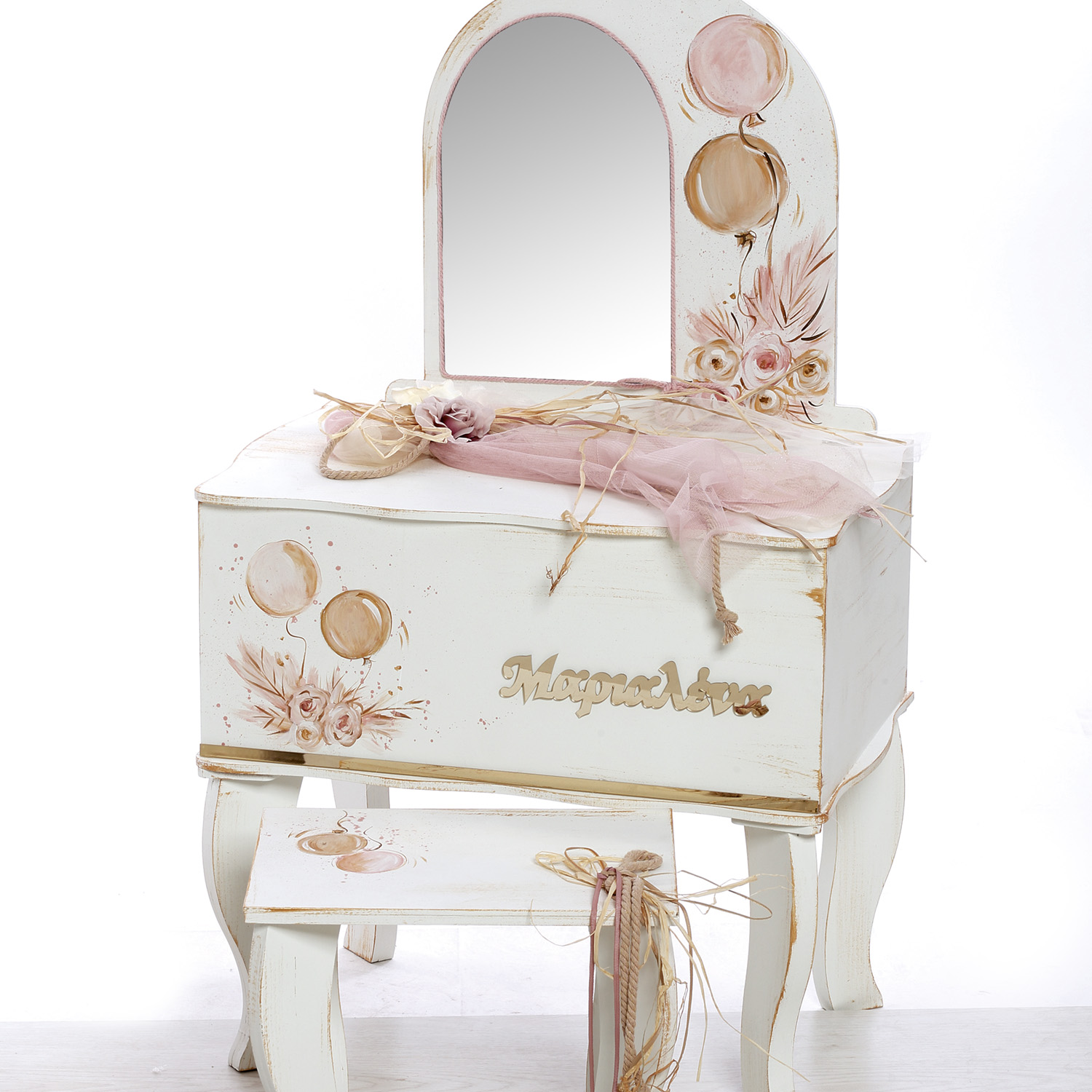 Σετ βάπτισης (κουτί,λαμπάδα,σταν λαδιού,λαδόπανο) με θέμα Μπαλόνια ζωγραφισμένο στο χέρι.Διάσταση Κουτιο΄ύ (Υ.80 Μ.52 Π.26)