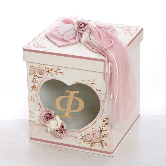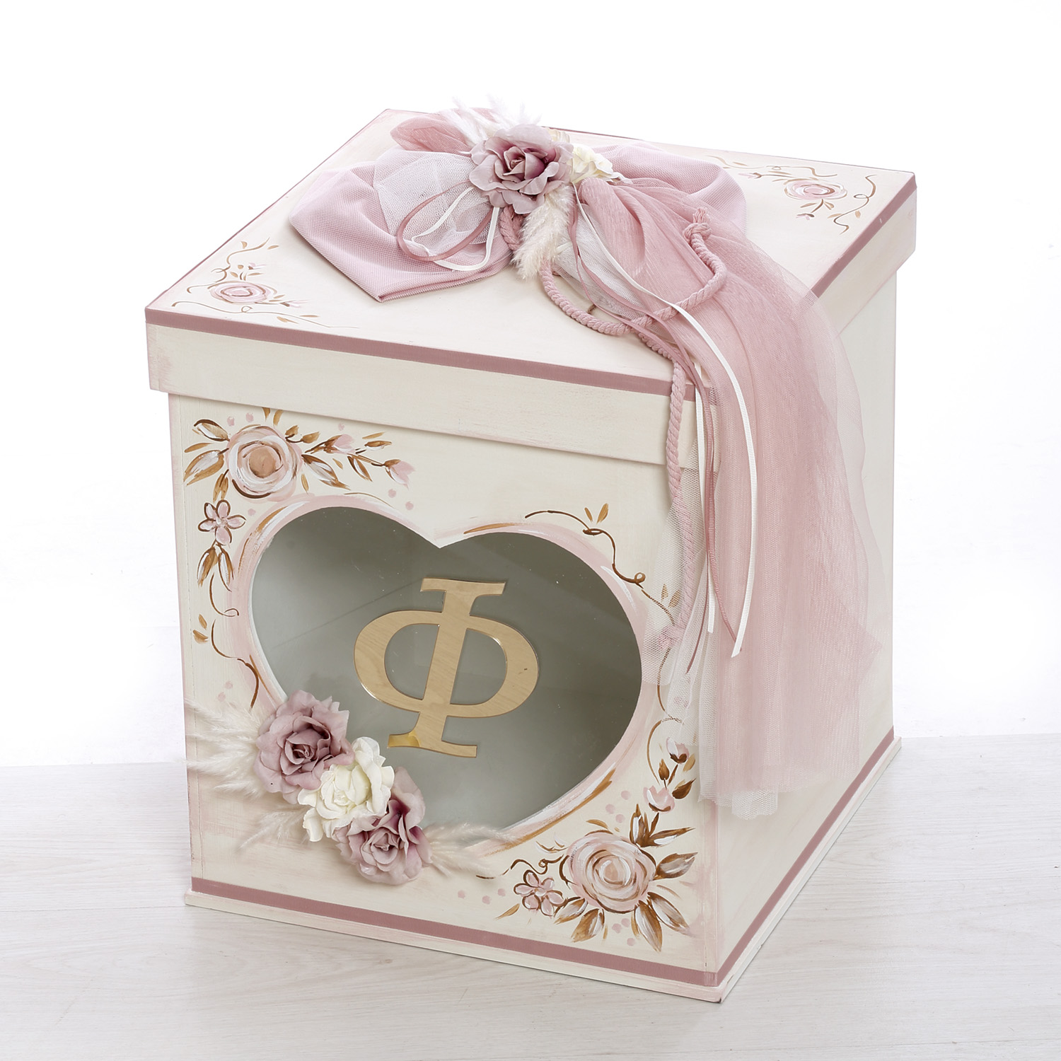 Σετ βάπτισης (κουτί,λαμπάδα,σταν λαδιού,λαδόπανο) με θέμα λουλούδια μονόγραμμα ζωγραφισμένο στο χέρι.Διάσταση Κουτιο΄ύ (Υ.57 Μ.40 Π.22)