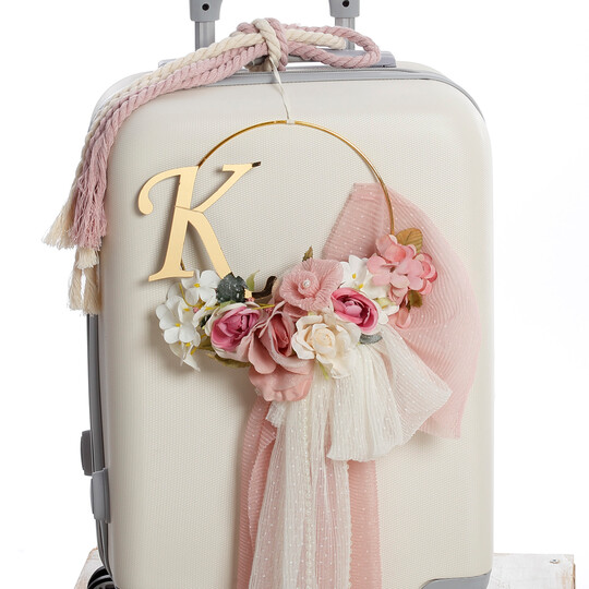 Ολοκληρωμένο πακέτο βάπτισης για κορίτσι από τη συλλογή "Romantic Floral". Μια πρόταση απαράμιλλης κομψότητας με vintage ρομαντική διάθεση, που συνδυάζει την πρακτικότητα μιας βαλίτσας τρόλεϊ με τον πλούσιο ανθοστόλιστο σχεδιασμό.Το Σετ Περιλαμβάνει:Βαλίτσα Τρόλεϊ: Υψηλής ποιότητας βαλίτσα καμπίνας (σκληρό κέλυφος) με 4 ρόδες για εύκολη μετακίνηση. Είναι διακοσμημένη με εκτύπωση ρομαντικών λουλουδιών (floral patterns) σε παστέλ ροζ αποχρώσεις και στολισμένη με μεγάλους υφασμάτινους φιόγκους. (Διαστάσεις: 57cm x 40cm x 22cm).Λαμπάδα: Εντυπωσιακός στολισμός με πλούσια τούλια, δαντέλες και ξύλινο στρογγυλό κάδρο/στεφάνι που απεικονίζει το floral θέμα της συλλογής.Λαδόπανα: Πλήρες σετ (πετσέτες, εσώρουχα) με τυπωμένη φάσα απόλυτα εναρμονισμένη με τα ρομαντικά λουλούδια του σετ.Σετ Λαδιού: Ξύλινο stand σε ροζ απόχρωση που περιέχει μπουκάλι, σαπούνι και 3 κεράκια, όλα ασορτί διακοσμημένα με floral λεπτομέρειες και κορδέλες.Σημειώσεις:1. Υπάρχει δυνατότητα επιλογής χρωμάτων στα υφάσματα και τους στολισμούς.