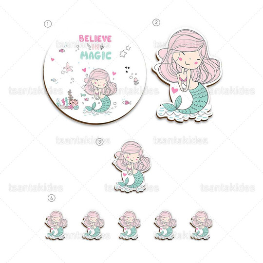 Ξύλινο σετ διακόσμησης εκτυπωμένο με θέμα τη γοργόνα στο βυθό