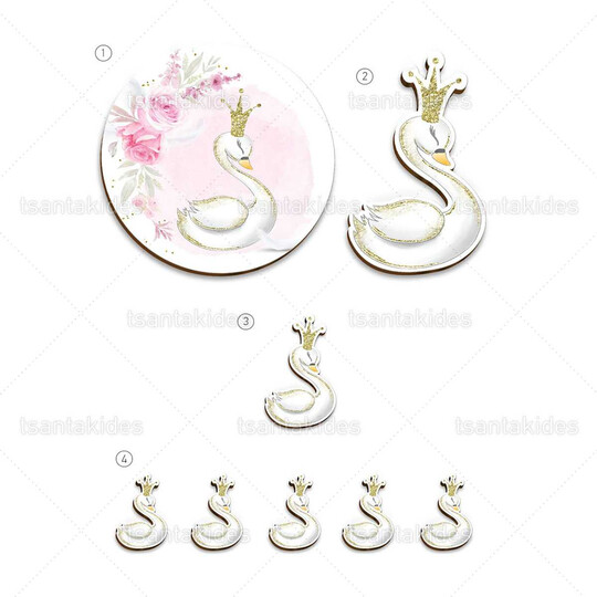 Ξύλινο σετ διακόσμησης εκτυπωμένο με θέμα τον κύκνο