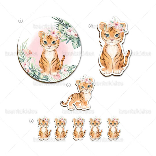Ξύλινο σετ διακόσμησης εκτυπωμένο με θέμα Baby Girl Tiger
