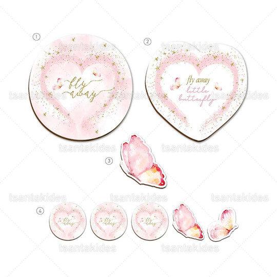 Ξύλινο σετ διακόσμησης εκτυπωμένο με θέμα Lovely Butterflies