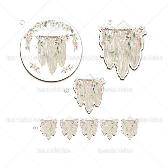 Ξύλινο σετ διακόσμησης εκτυπωμένο με θέμα Boho Macrame