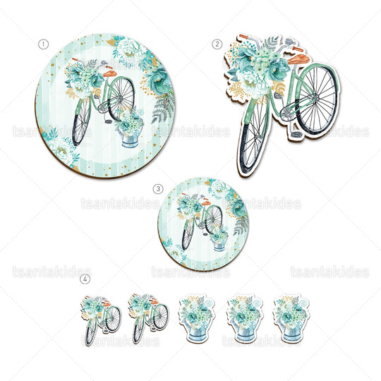 Ξύλινο σετ διακόσμησης εκτυπωμένο με θέμα Floral Bicycle