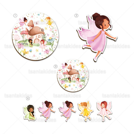 Ξύλινο σετ διακόσμησης εκτυπωμένο με θέμα Fairies