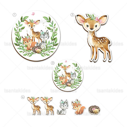 Ξύλινο σετ διακόσμησης εκτυπωμένο με θέμα Woodland Animals