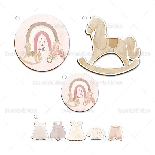 Ξύλινο σετ διακόσμησης εκτυπωμένο με θέμα Nursery Clothes