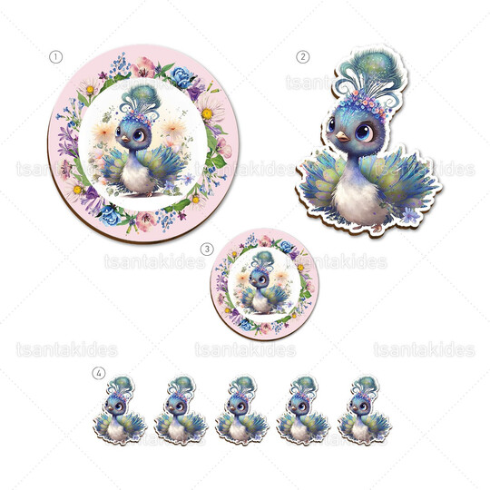 Ξύλινο σετ διακόσμησης εκτυπωμένο με θέμα Cute Peacock
