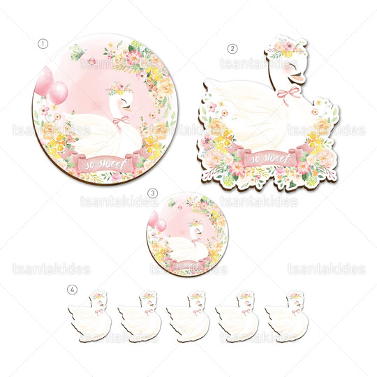 Ξύλινο σετ διακόσμησης εκτυπωμένο με θέμα Swan