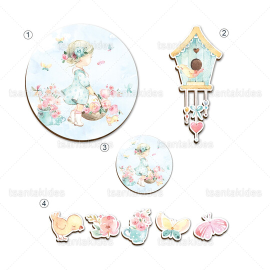 Ξύλινο σετ διακόσμησης εκτυπωμένο με θέμα Shabby chic baby girl
