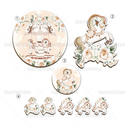 Ξύλινο σετ διακόσμησης εκτυπωμένο με θέμα Carousel