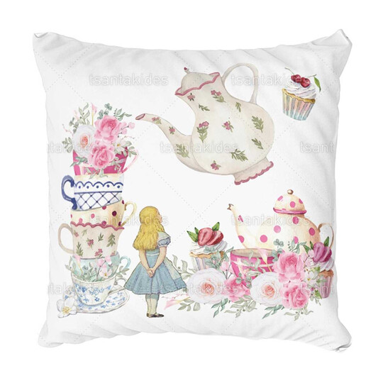 Διακοσμητικό μαξιλάρι με θέμα Alice Teapot & Candies