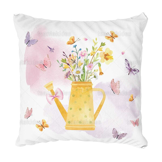 Διακοσμητικό μαξιλάρι με θέμα Watering Can and Wildflowers