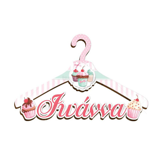 Ξύλινη παιδική κρεμάστρα εκτυπωμένη με θέμα cupcakes