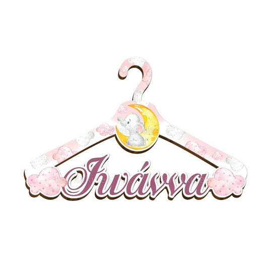 Ξύλινη παιδική κρεμάστρα εκτυπωμένη με θέμα το μικρό ελεφαντάκι στο φεγγάρι