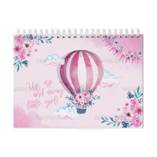 Παιδική μπομπονιέρα βάπτισης μπλοκ ζωγραφικής με διάσταση 21x29cm, εκτυπωμένο με θέμα Αερόστατο.