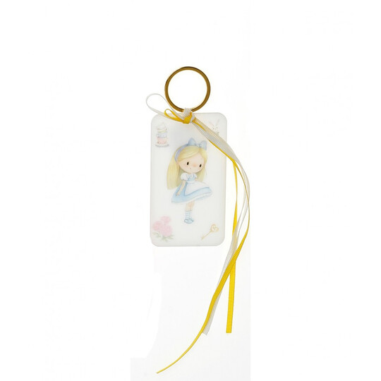 Μπομπονιέρα βάπτισης μπρελόκ με εκτυπωμένο πλέξιγκλας με σχέδιο Αλίκη στην χώρα των θαυμάτων.