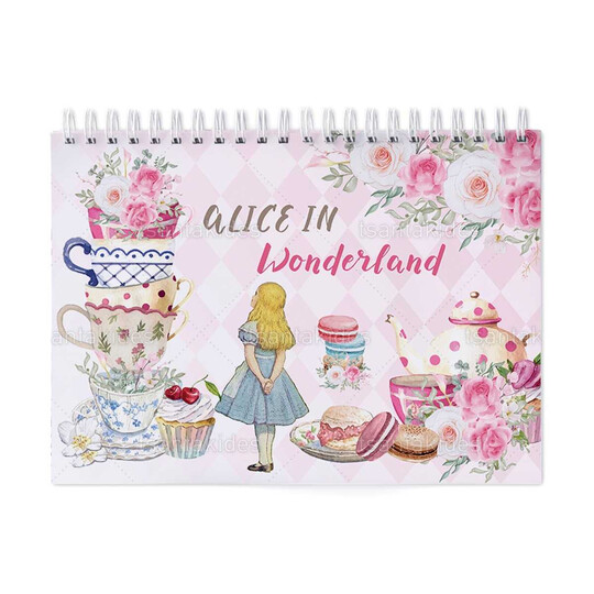 Παιδική μπομπονιέρα βάπτισης μπλοκ ζωγραφικής με διάσταση 21x29cm, εκτυπωμένο με θέμα Αλίκη.