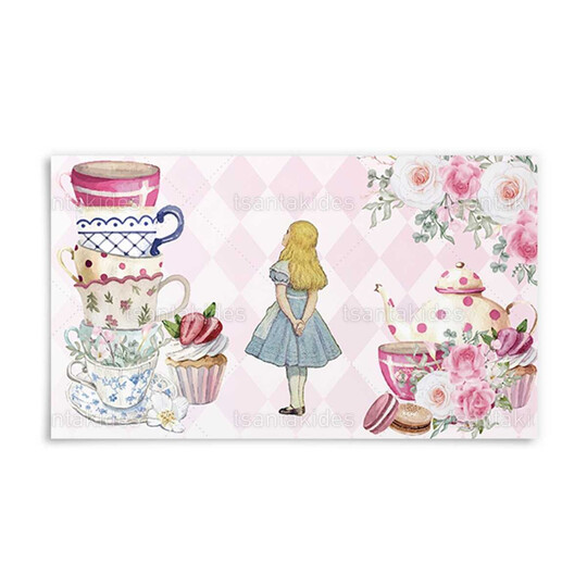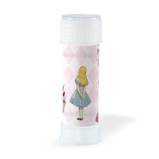 Ετικέτα για σαπουνόφουσκες εκτυπωμένη με θέμα Alice Teapot & Candies
