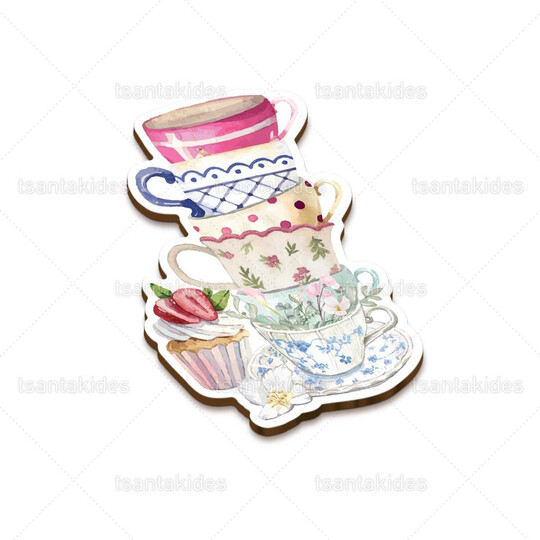 Ξύλινο διακοσμητικό μπομπονιέρας εκτυπωμένο με θέμα Alice Teapot & Candies