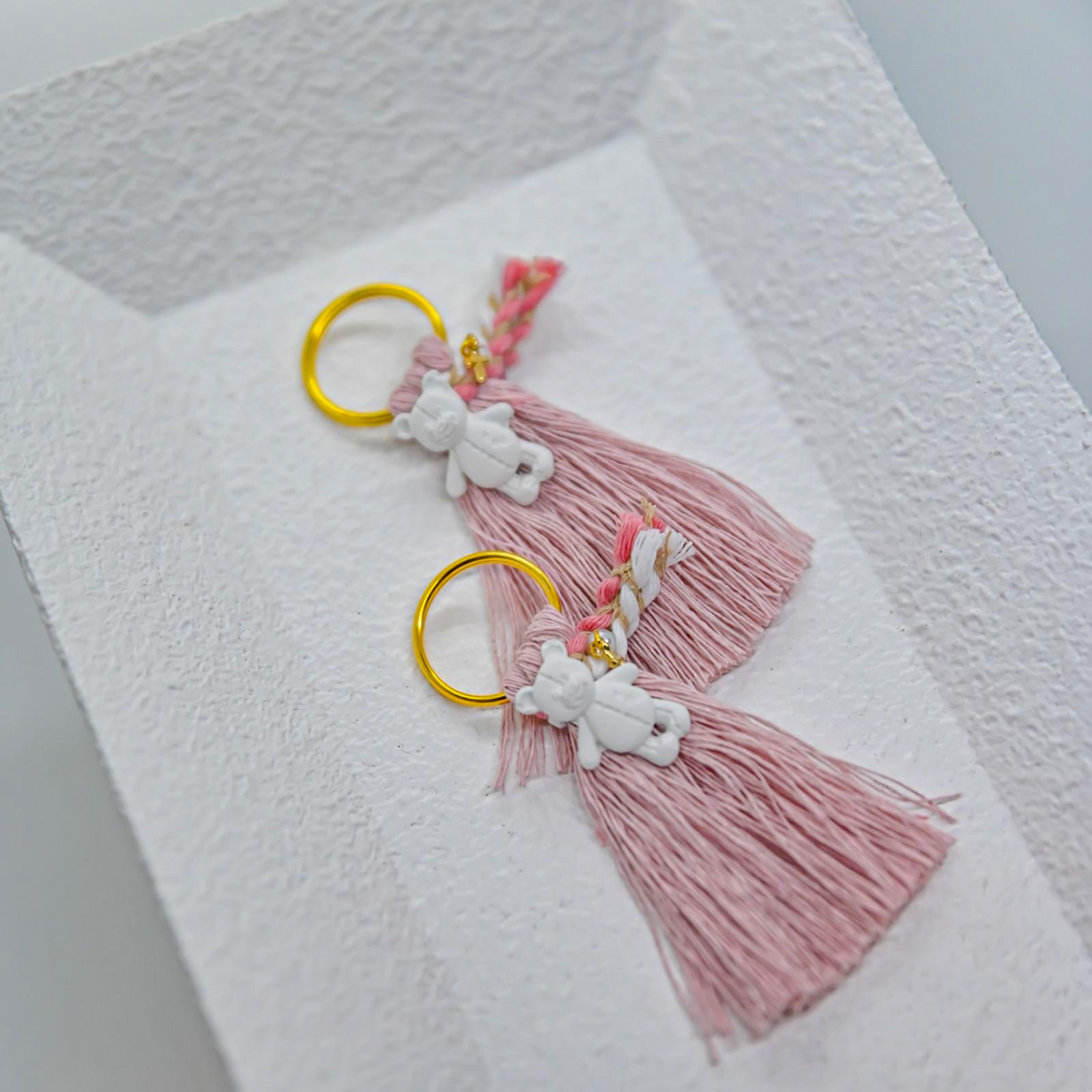 Μαρτυρικό βάπτισης για κορίτσι μπρελόκ με αρωματικό στοιχείο αρκουδάκι και επίχρυσο σταυρουδάκι.