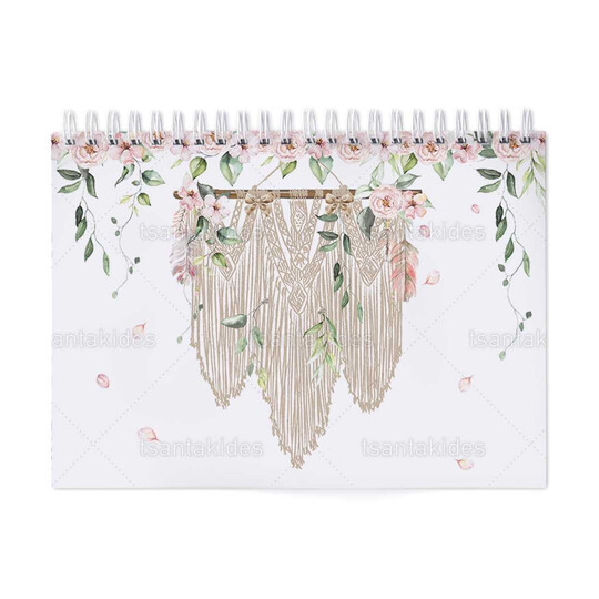 Παιδική μπομπονιέρα βάπτισης μπλοκ ζωγραφικής με διάσταση 21x29cm, εκτυπωμένο με θέμα Boho Macrame.