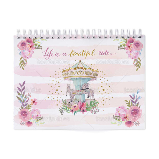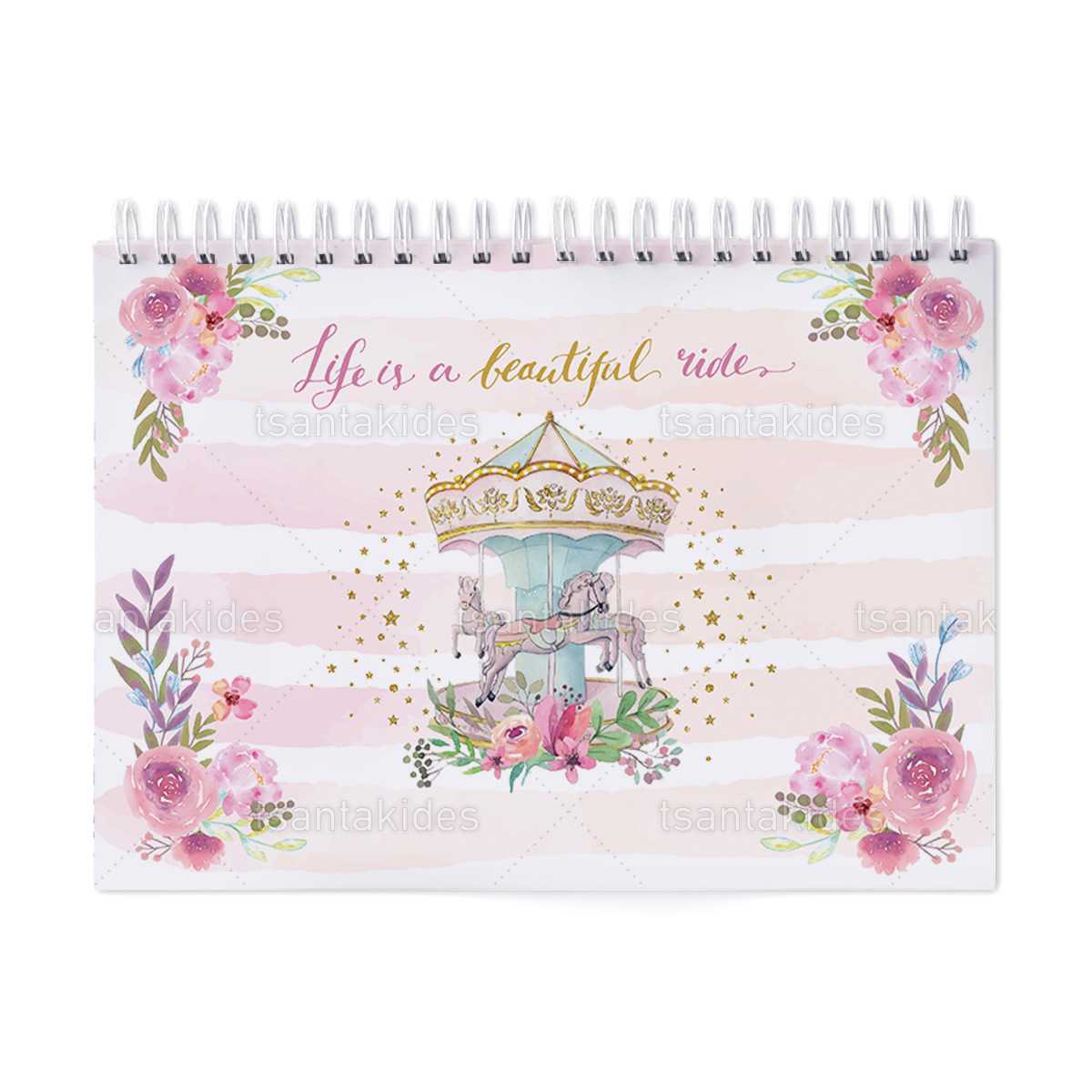 Παιδική μπομπονιέρα βάπτισης μπλοκ ζωγραφικής με διάσταση 21x29cm, εκτυπωμένο με θέμα Καρουζέλ.