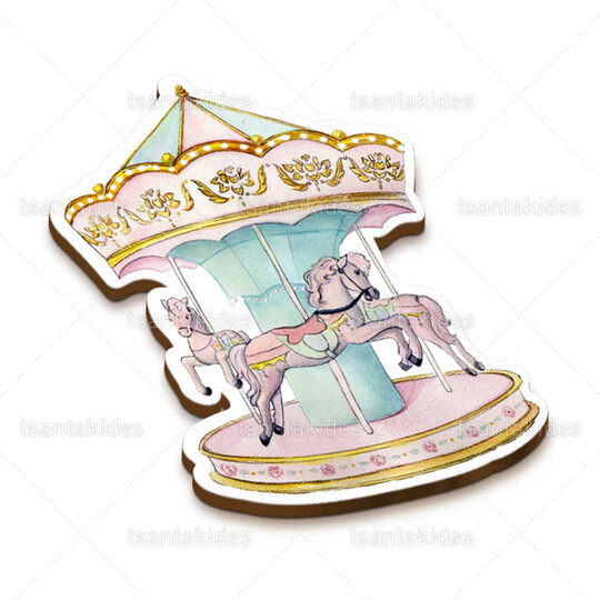 Ξύλινο διακοσμητικό μπομπονιέρας εκτυπωμένο με θέμα carousel