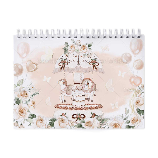 Παιδική μπομπονιέρα βάπτισης μπλοκ ζωγραφικής με διάσταση 21x29cm, εκτυπωμένο με θέμα Καρουζέλ.