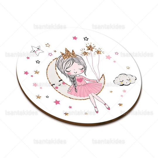 Ξύλινο διακοσμητικό μπομπονιέρας εκτυπωμένο με θέμα Girl On The Moon