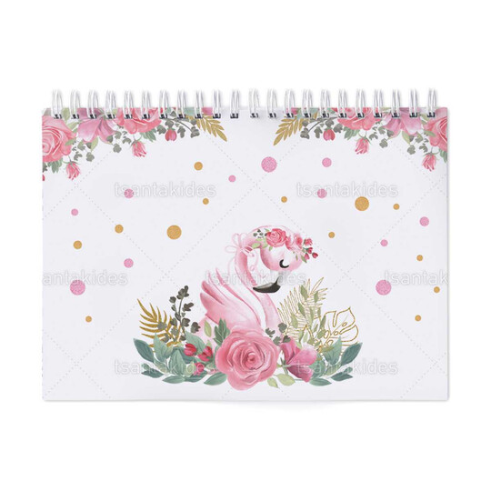 Παιδική μπομπονιέρα βάπτισης μπλοκ ζωγραφικής με διάσταση 21x29cm, εκτυπωμένο με θέμα Floral Φλαμίνγκο.