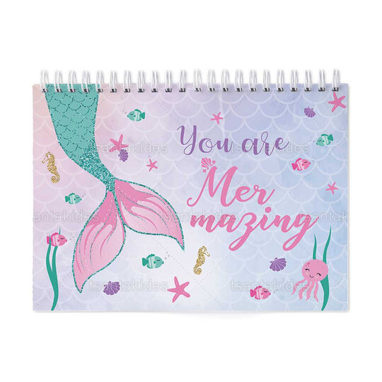 Παιδική μπομπονιέρα βάπτισης μπλοκ ζωγραφικής με διάσταση 21x29cm, εκτυπωμένο με θέμα Γοργόνα.