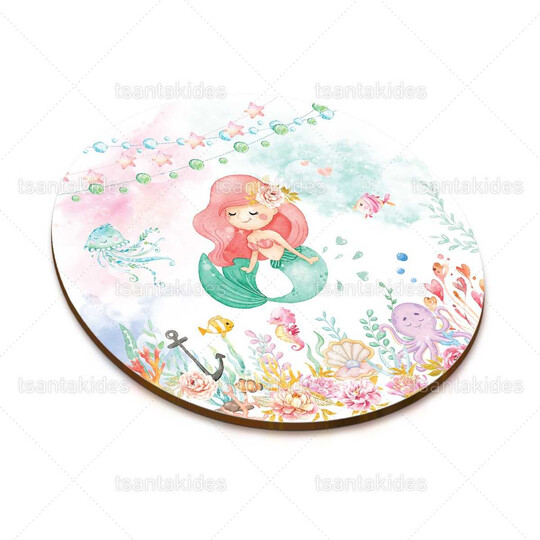 Ξύλινο διακοσμητικό μπομπονιέρας εκτυπωμένο με θέμα Mermaid
