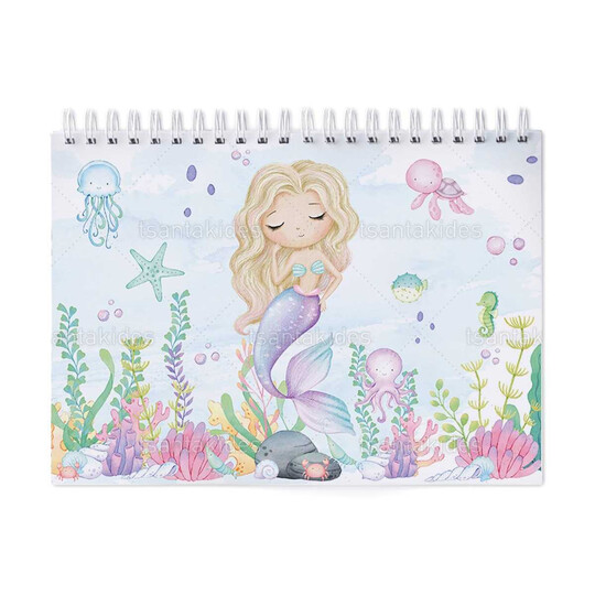 Παιδική μπομπονιέρα βάπτισης μπλοκ ζωγραφικής με διάσταση 21x29cm, εκτυπωμένο με θέμα Γοργόνα.